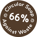 The Coffee Soap with Cloves is 66% circular and includes circular ingredients like residual olive oil, coffee, rainwater, oil from coffee grounds, and oil from rejected avocados.